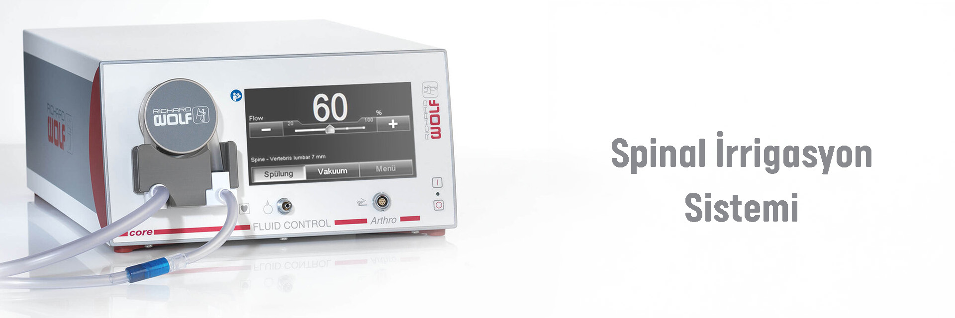 Fluid Control Arthro irigasyon ve suction pompasını tek bir ünitede birleştirir. İrrigation için silindirli pompanın yanına bir vakum pompası entegre edilmiştir. Bu, önemli ölçüde maliyet tasarrufu sağlar.